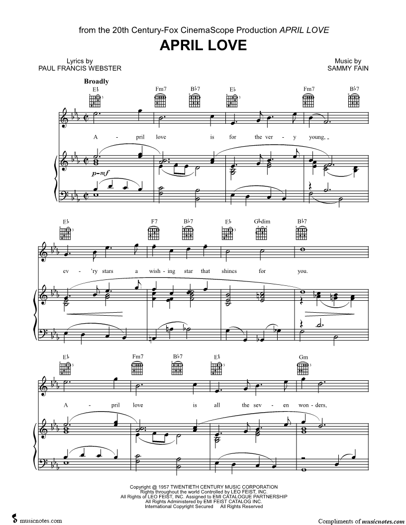 April love is for the very young, ev'ry stars a wishing star that shines for you. |