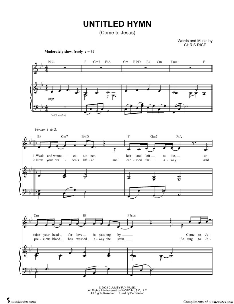 Weak and wounded sinner, lost and left to die, oh raise your head for love is passing by. |