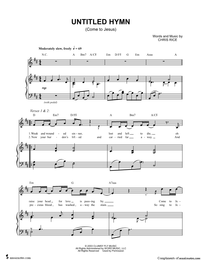 Weak and wounded sinner, lost and left to die, oh raise your head for love is passing by. |
