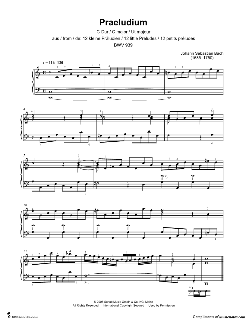 12 Little Preludes: Praeludium in C Major, BWV 939 |