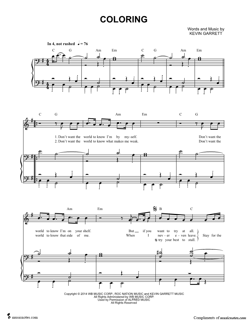 Musicnotes sells a wide variety of digital sheet music products including Singer Pros, Beginner Notes, Choral music, Piano Solos, Lead Sheets, Piano/Vocal/Guitar, Solo and Accompaniment, and fretted instrument tablature.