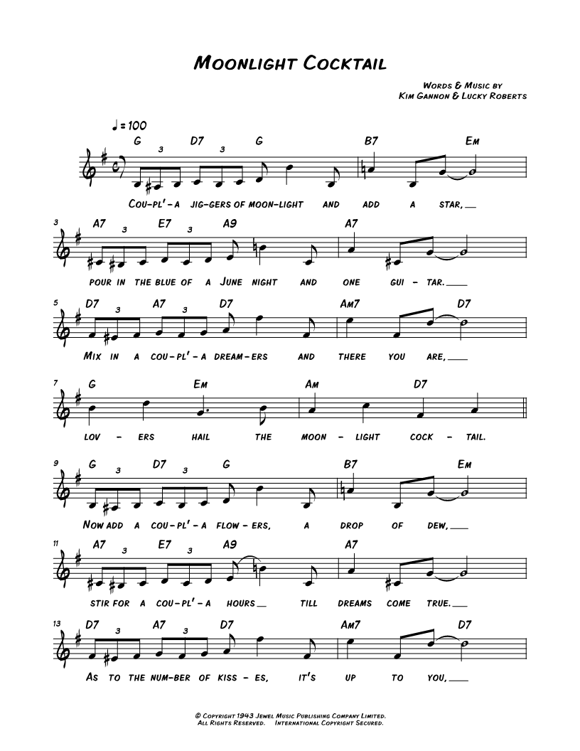Coupl'a jiggers of moonlight and add a star, pour in the blue of a June night and one guitar. |