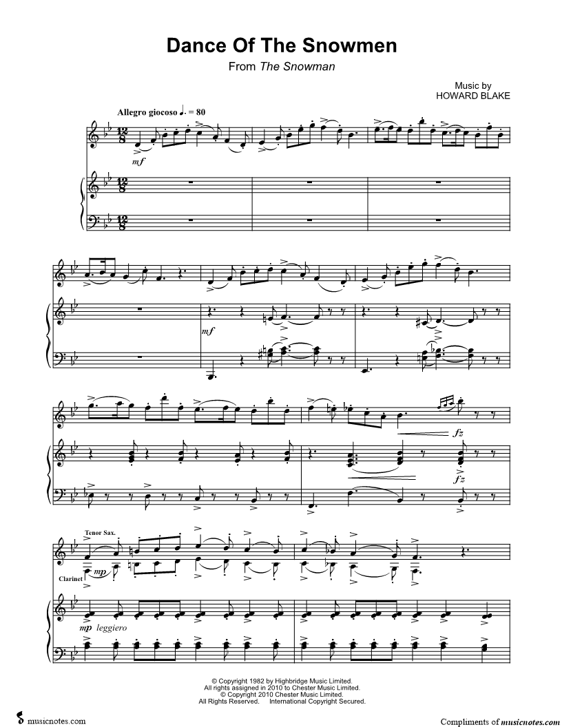 Treble Clef Instrument 1 or Tenor Saxophone Treble Clef Instrument 2 or Clarinet Piano | |