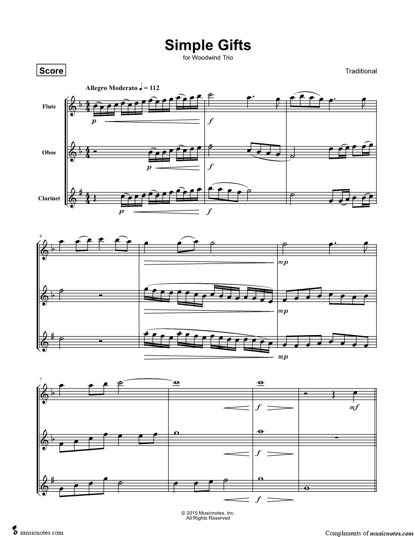 Simple Gifts - Woodwind Trio |