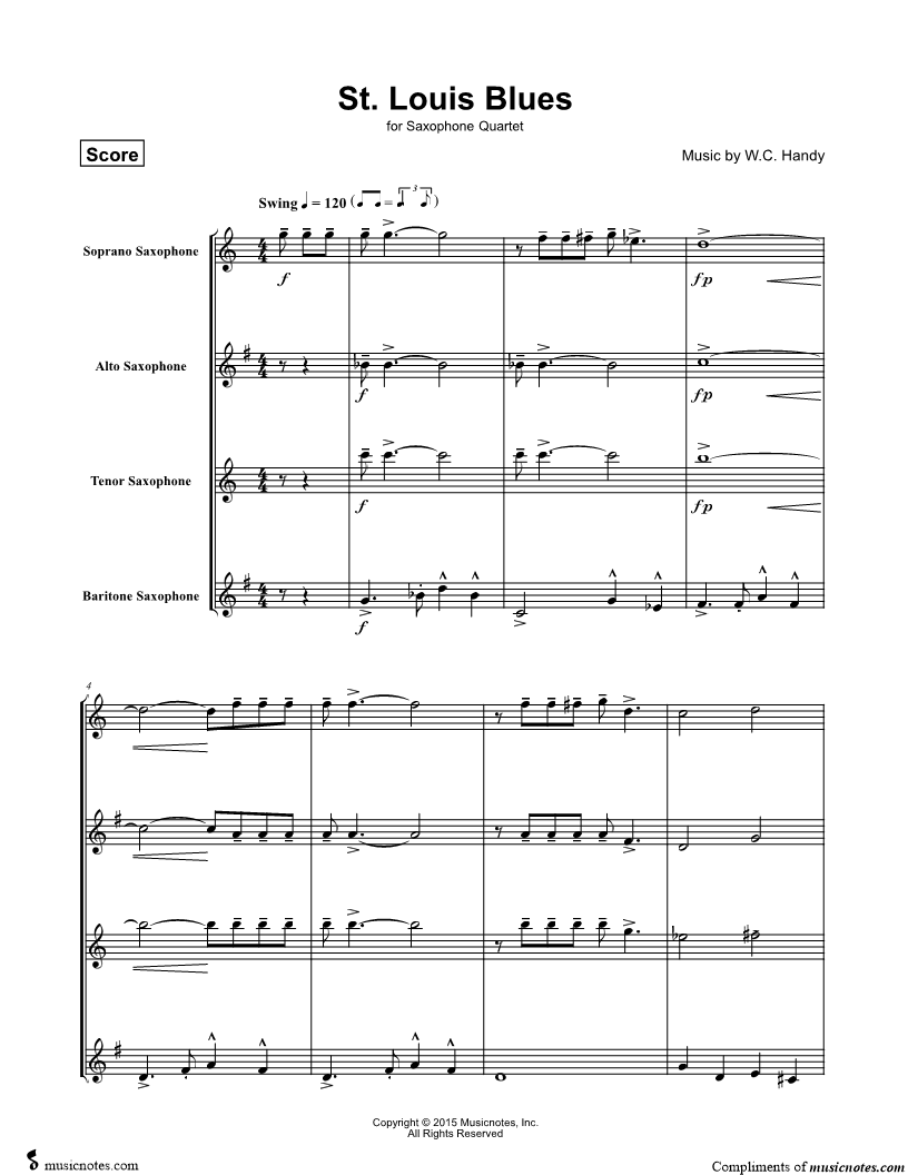 St. Louis Blues - Saxophone Quartet |