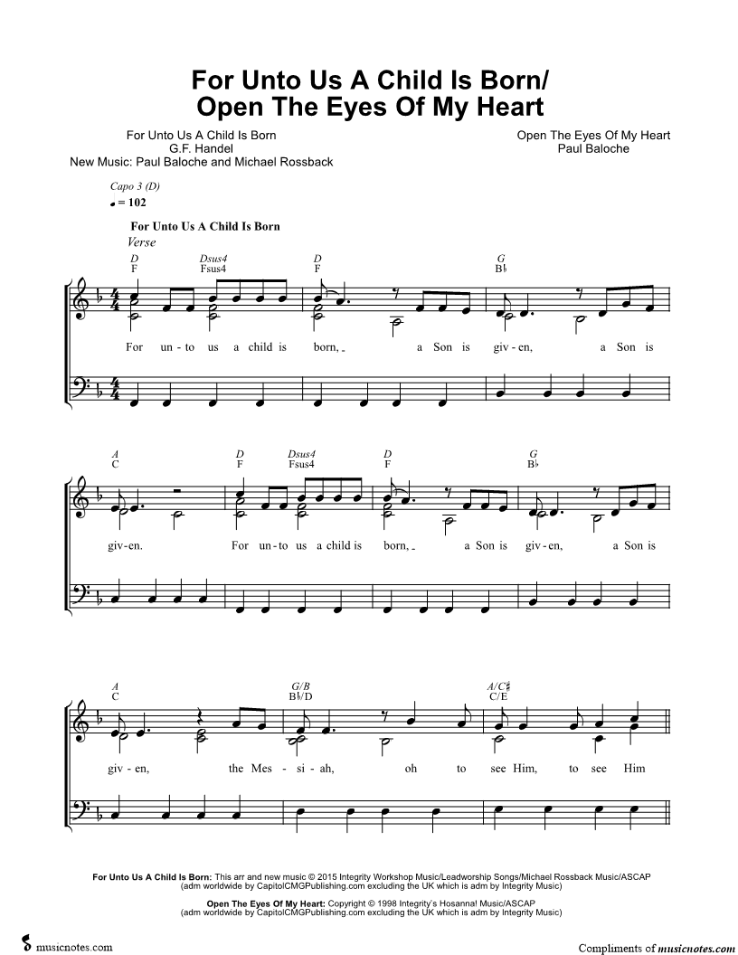 For Unto Us a Child Is Born / Open the Eyes of My Heart |