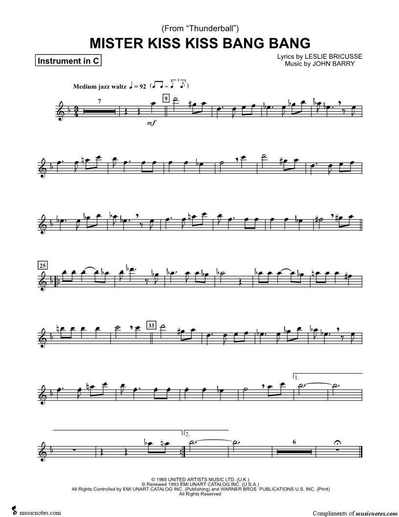 Mister Kiss Kiss Bang Bang - C Instrument & Piano (From "Thunderball")