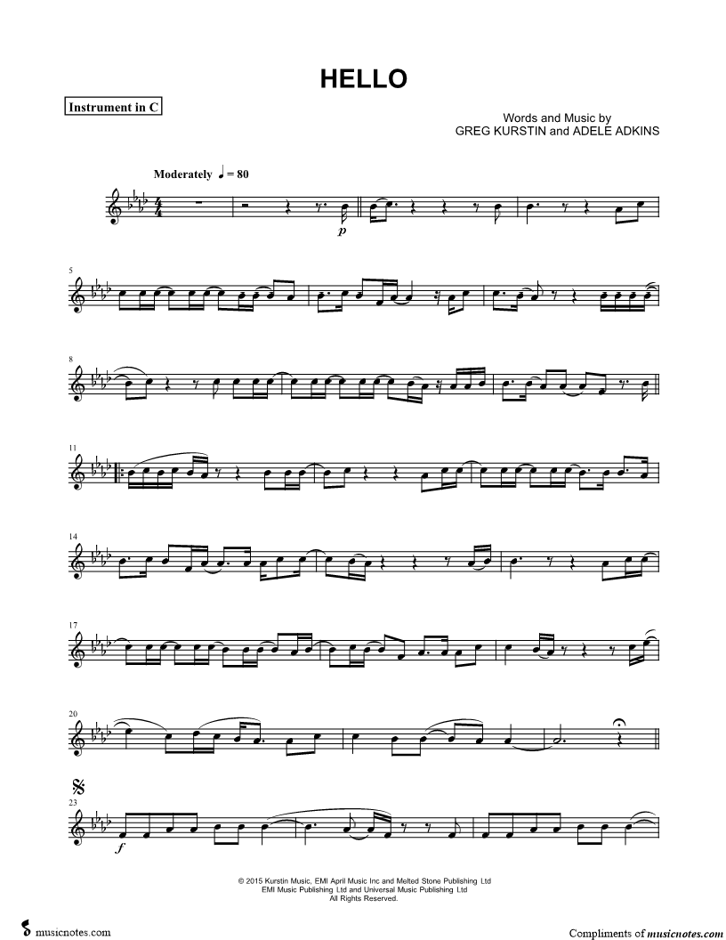 C Instrument, range: Eb4-Ab5 (Flute, Violin, Oboe or Recorder) | |