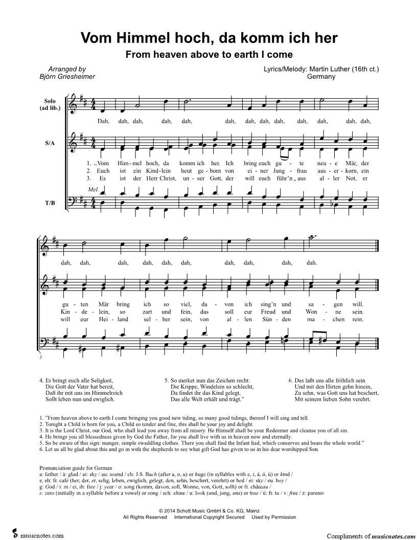 Vom Himmel hoch, da komm ich her. Ich bring euch gute neue Mär, |
