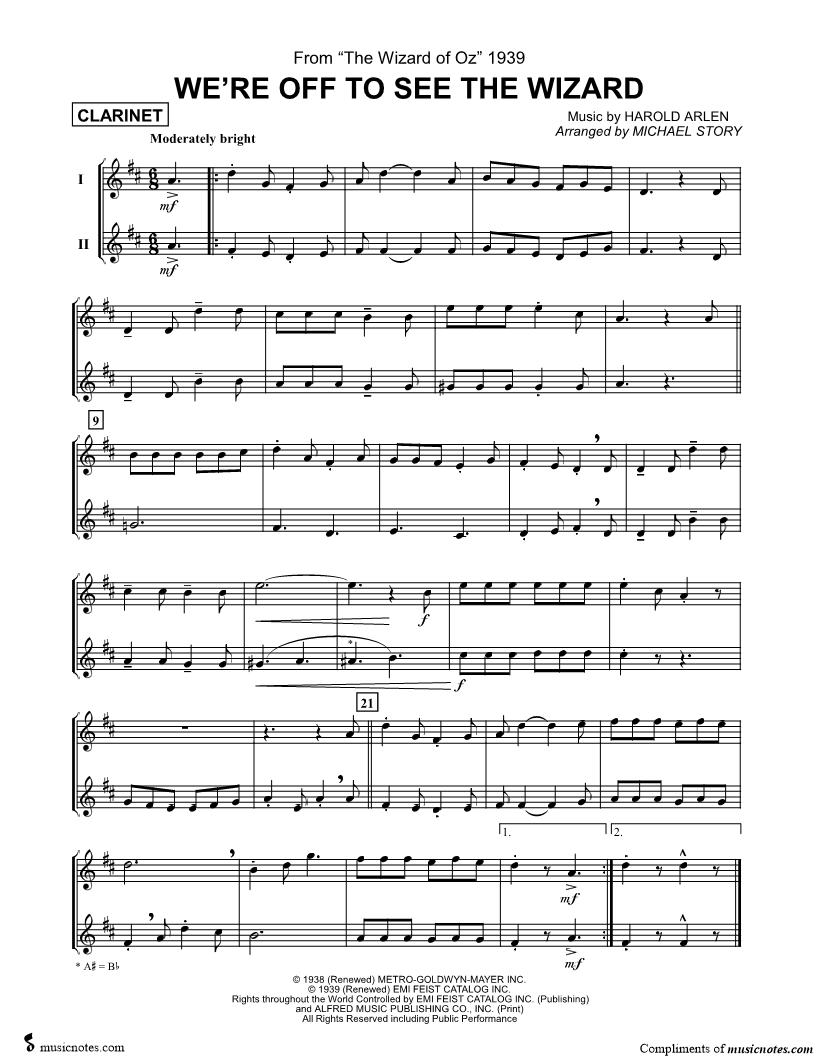 We're Off to See the Wizard - Clarinet Duet |