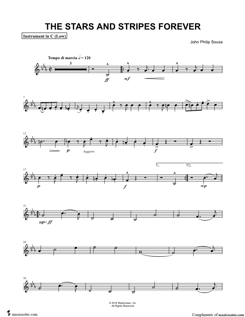 The Stars and Stripes Forever [Complete] - C Instrument (Low) & Piano