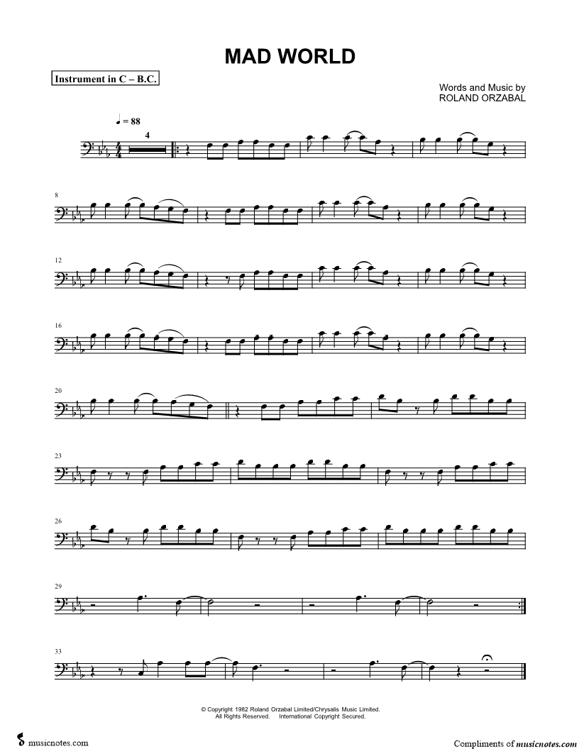 Bass Clef Instrument, range: C3-D4 (Trombone, Bassoon, Baritone Horn or Euphonium, Cello or Double Bass) | |