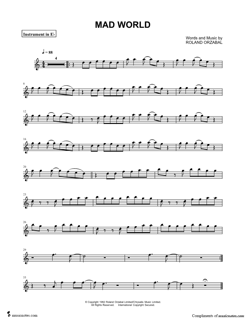 Mad World - Eb Instrument |