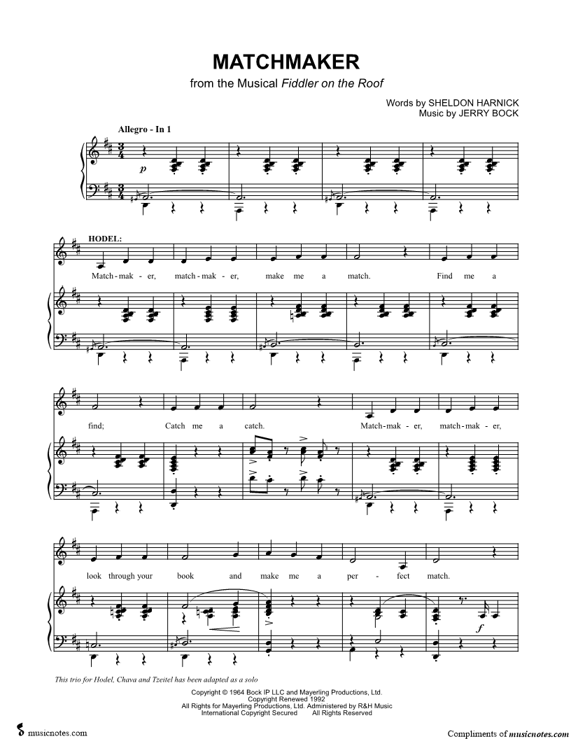Matchmaker, matchmaker, make me a match. |