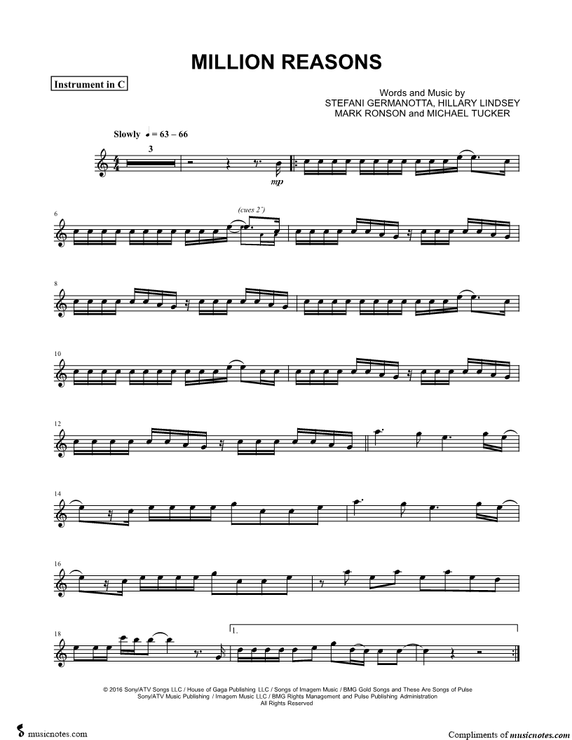 Million Reasons - C Instrument |
