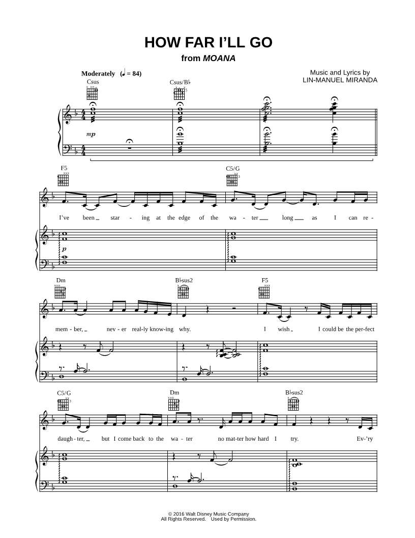 "This arrangement is true to the soundtrack version. Readable, reliable, and a great song!"