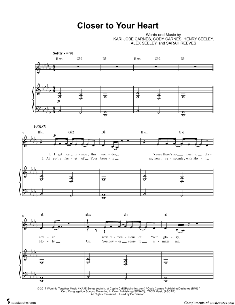 Many of the arrangements on Musicnotes have transpositions available, typically in C Major, as well as 3 sharps and 3 flats. If you do not see your desired key, you can request a transposition by reaching out to Customer Support.