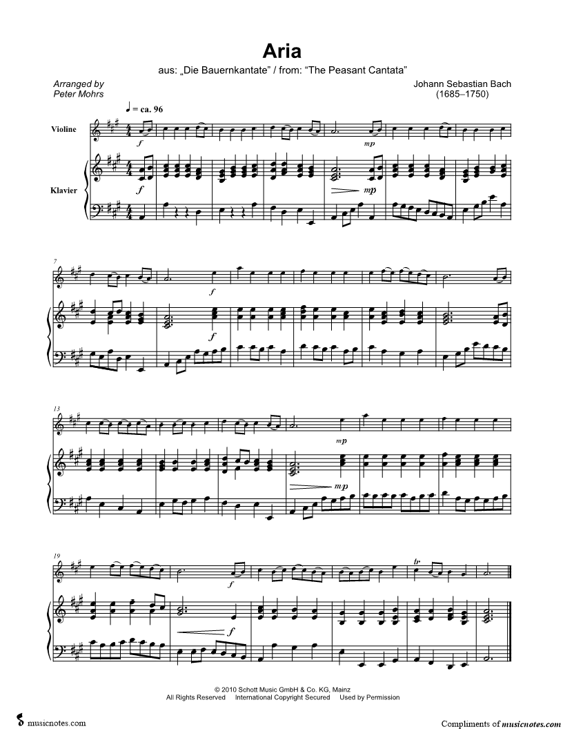 Aria from The Peasant Cantata - Violin & Piano |