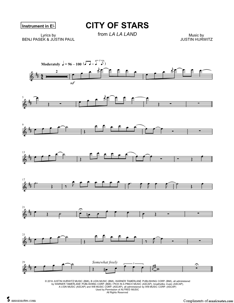 City of Stars [Sebastian Solo] - Eb Instrument |