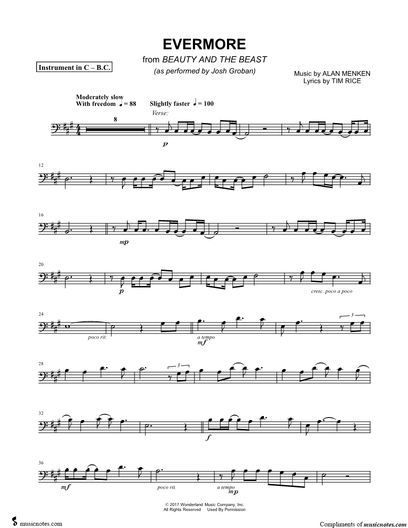 Evermore - Bass Clef Instrument & Piano from Beauty and the Beast