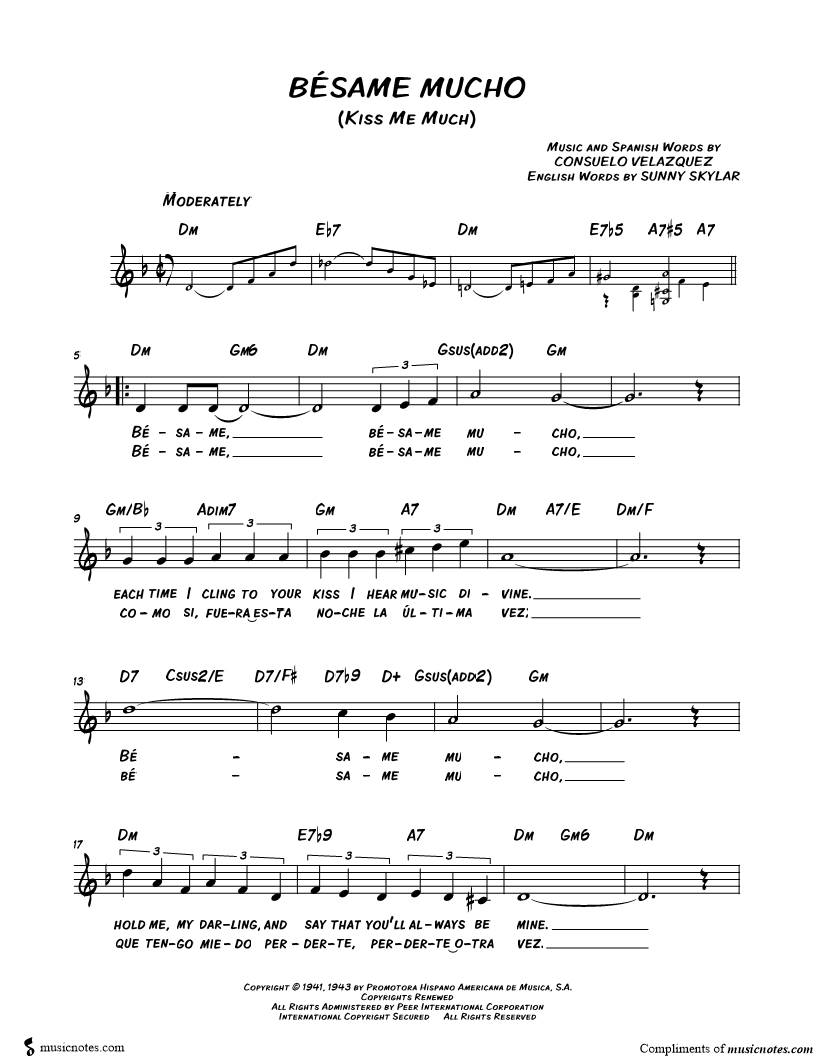 Bésame, besame mucho, each time I cling to your kiss I hear music divine. |