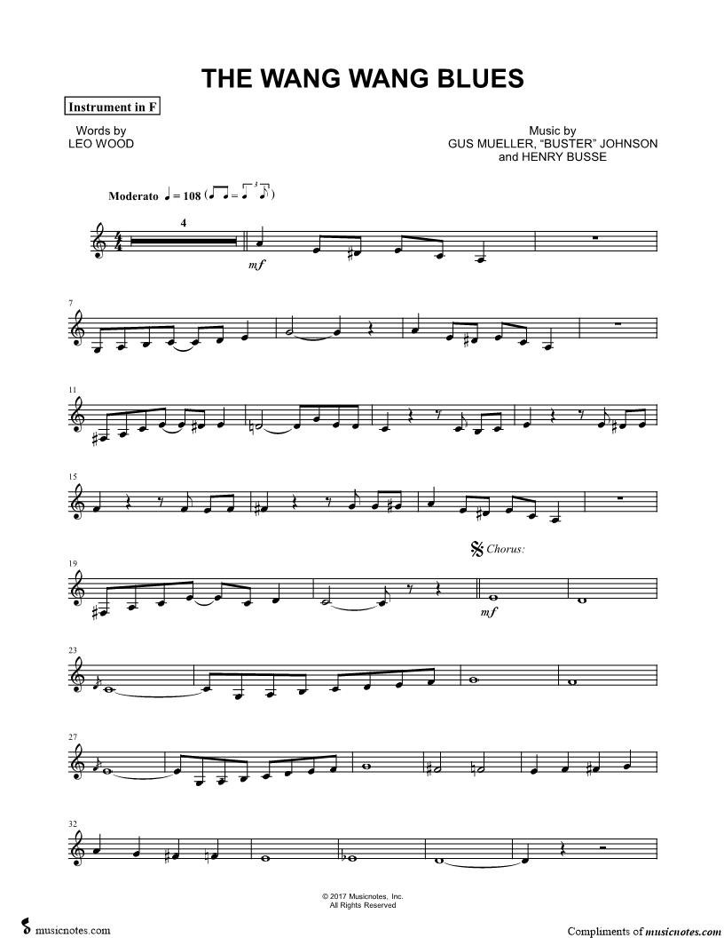 The Wang Wang Blues - F Instrument |