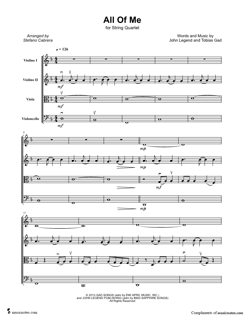 Violin 1, range: A3-D6 Violin 2, range: G3-G5 Viola, range: C3-F4 Cello, range: C2-C4 | |