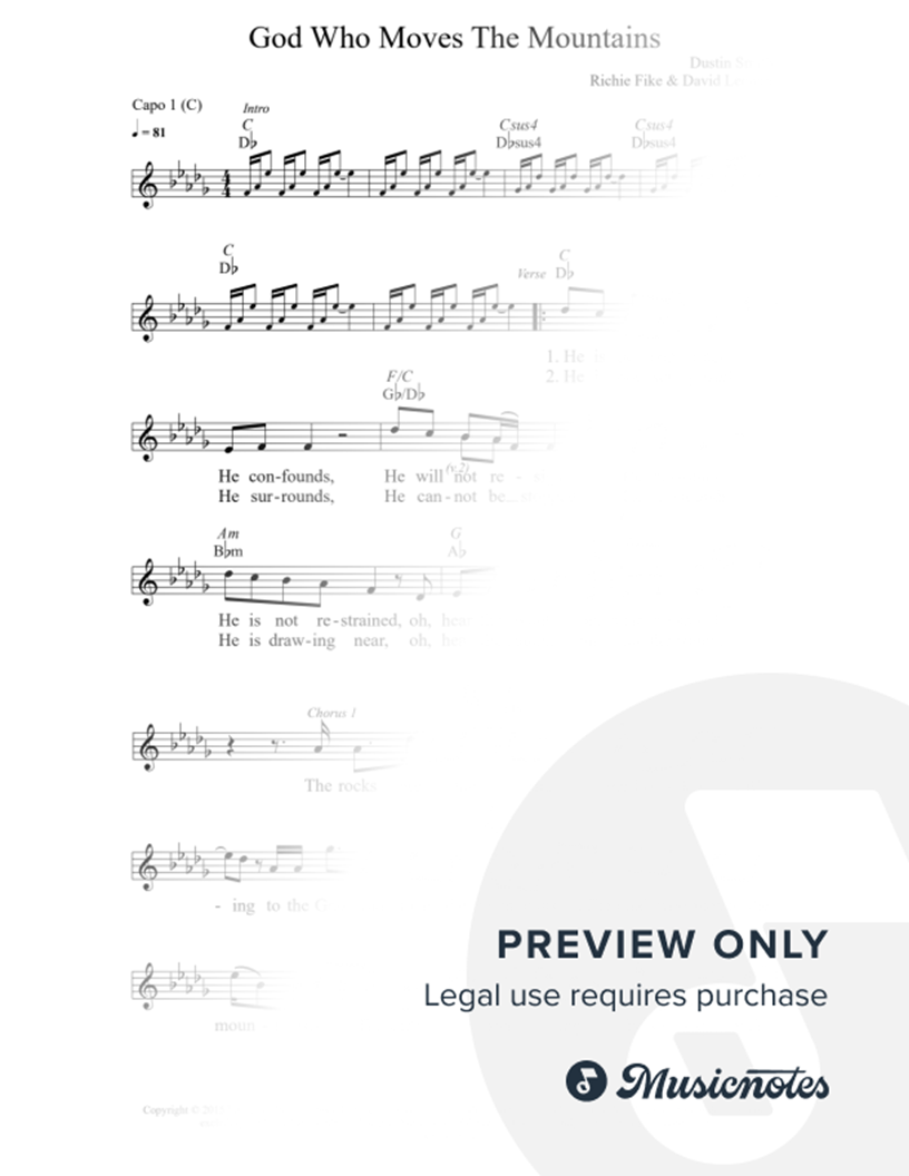 Many of the arrangements on Musicnotes have transpositions available, typically in C Major, as well as 3 sharps and 3 flats. If you do not see your desired key, you can request a transposition by reaching out to Customer Support.