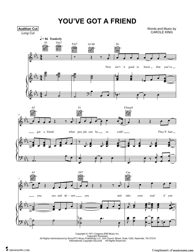 Now ain't it good to know that you've got a friend when people can be so cold? |
