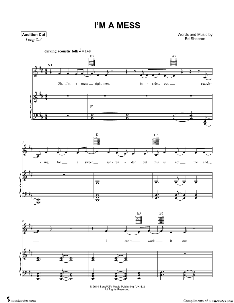 Musicnotes sells a wide variety of digital sheet music products including Singer Pros, Beginner Notes, Choral music, Piano Solos, Lead Sheets, Piano/Vocal/Guitar, Solo and Accompaniment, and fretted instrument tablature.