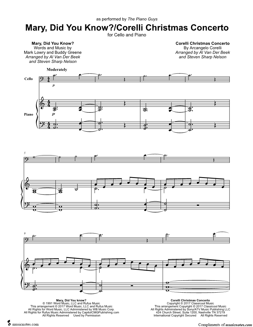 Mary, Did You Know / Corelli Christmas Concerto - Piano & Cello |