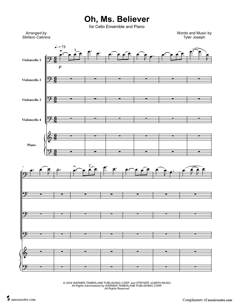 Oh, Ms. Believer - Cello Ensemble & Piano |