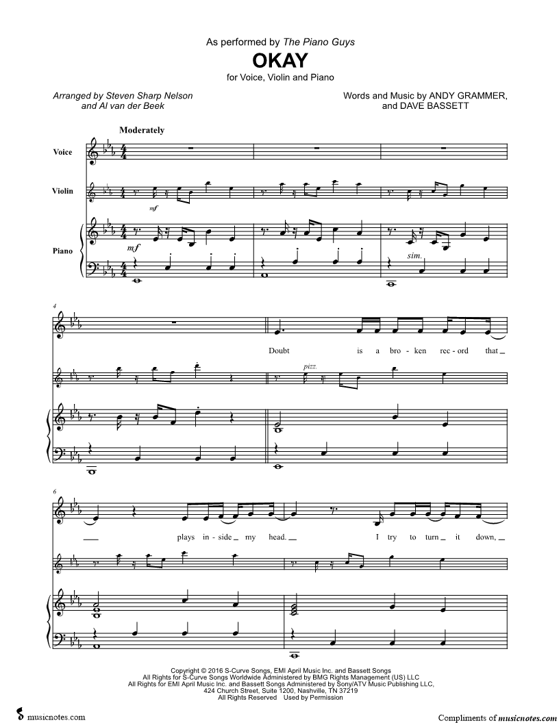 Voice, range: Bb3-Bb5 Violin, range: C4-Eb6 Piano | |