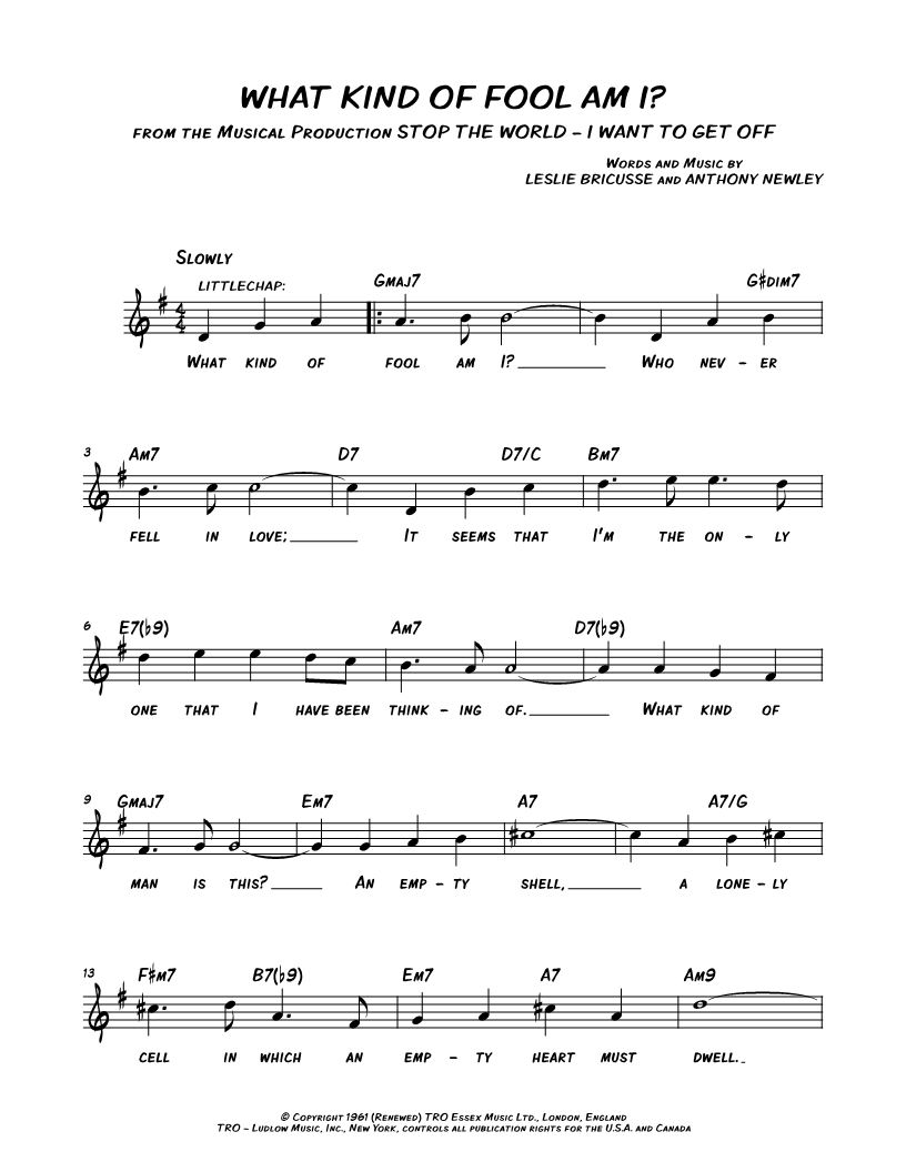 Leadsheets typically only contain the lyrics, chord symbols and melody line of a song and are rarely more than one page in length. Musicians will often use these skeletons to improvise their own arrangements. Leadsheets often do not contain complete lyrics to the song.