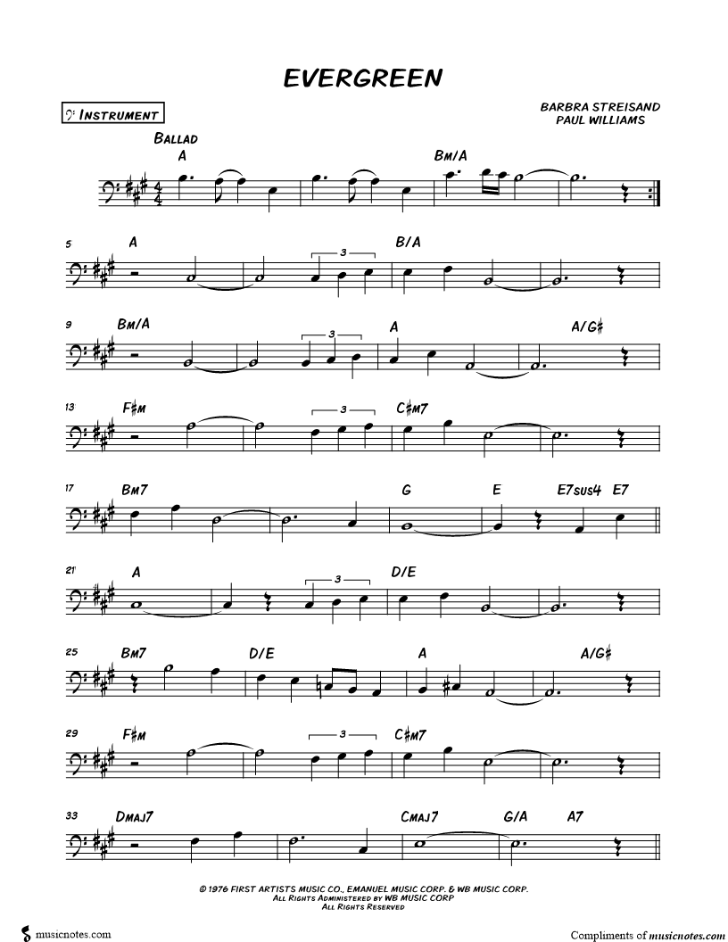 Evergreen - Bass Clef Instrument |