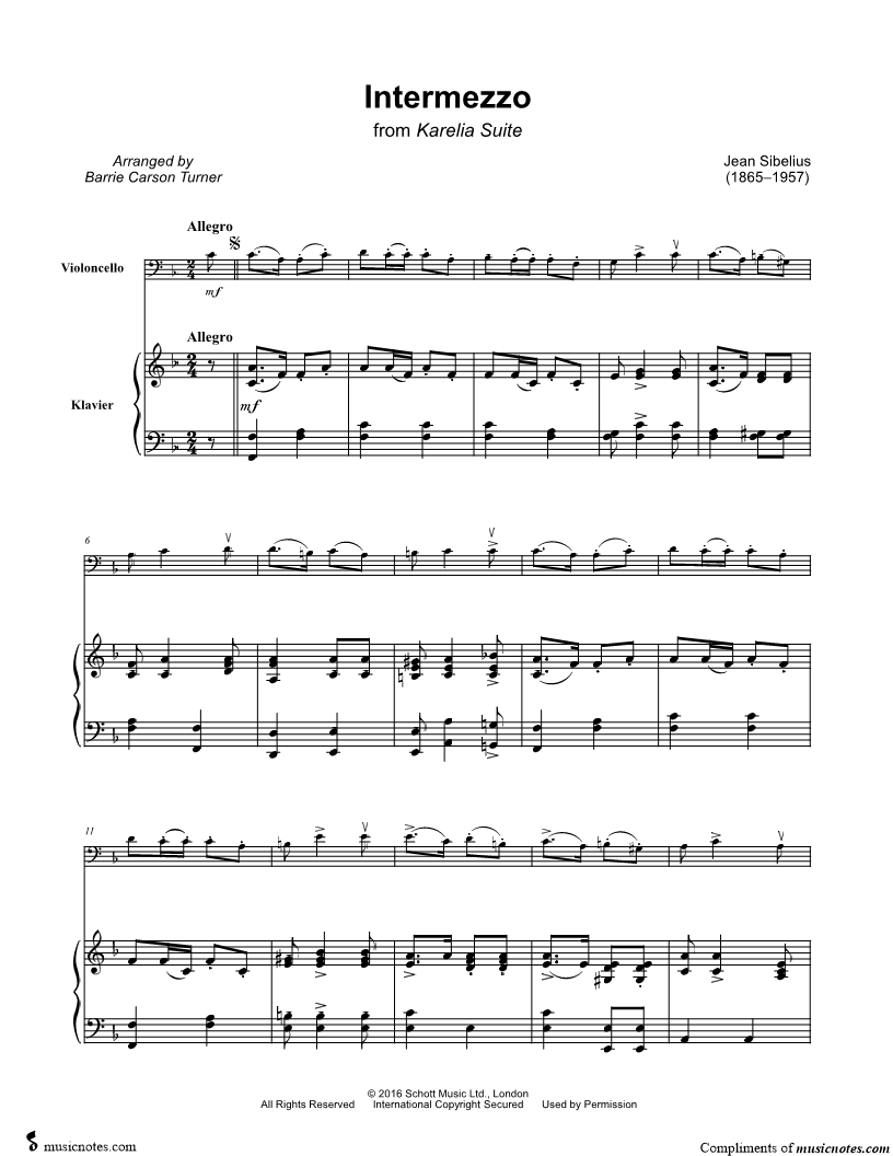 Karelia Suite, Op. 11: I. Intermezzo - Cello & Piano |