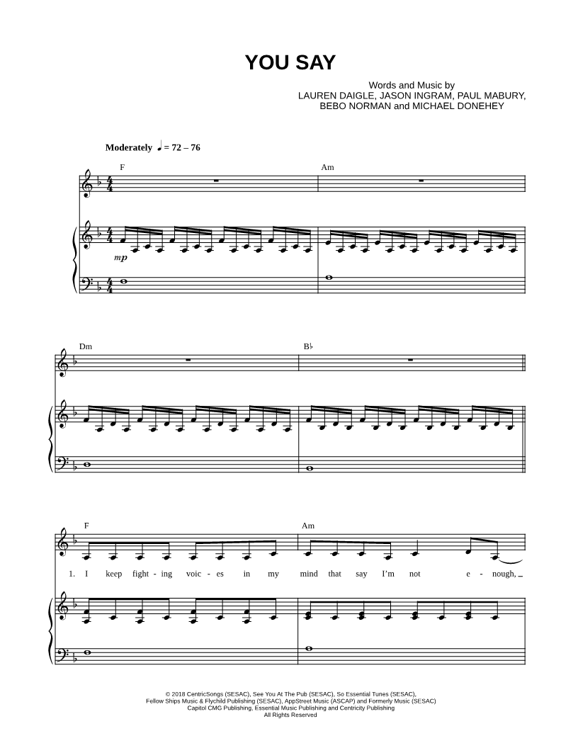 I keep fighting voices in my mind that say I'm not enough, ev'ry single lie that tells me I will never measure up. |