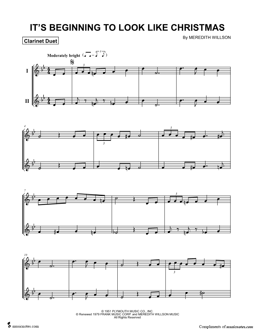It's Beginning to Look a Lot Like Christmas - Clarinet Duet |