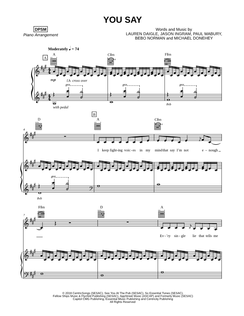 Many of the arrangements on Musicnotes have transpositions available, typically in C Major, as well as 3 sharps and 3 flats. If you do not see your desired key, you can request a transposition by reaching out to Customer Support.
