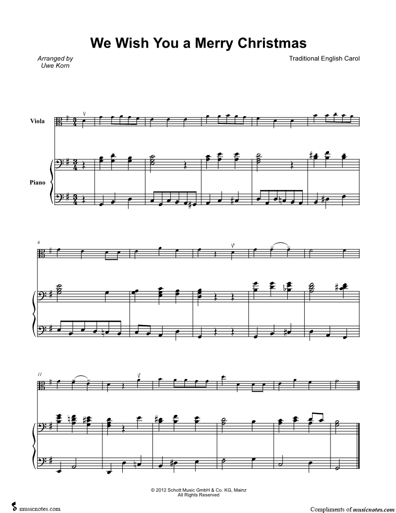 We Wish You a Merry Christmas - Viola & Piano |