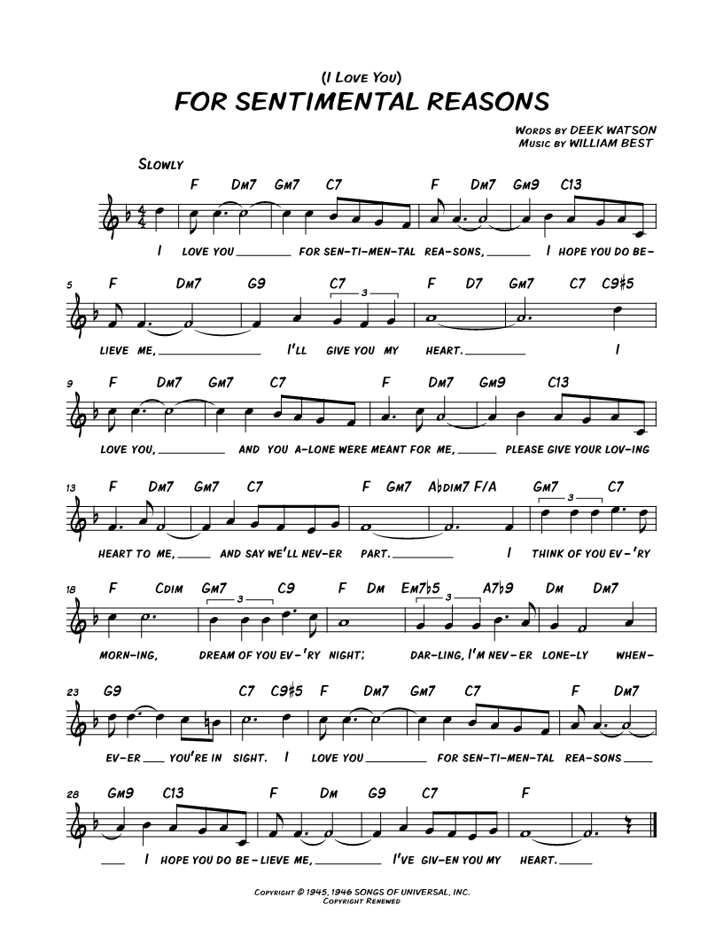 Leadsheets typically only contain the lyrics, chord symbols and melody line of a song and are rarely more than one page in length. Musicians will often use these skeletons to improvise their own arrangements. Leadsheets often do not contain complete lyrics to the song.