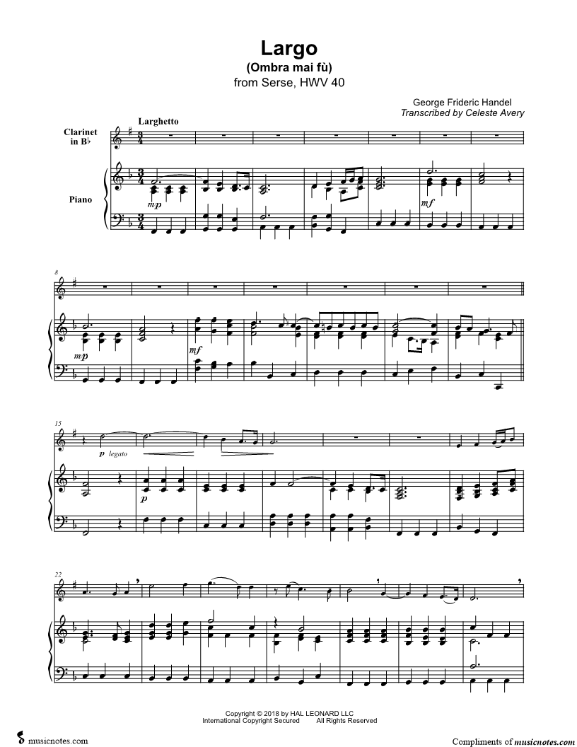 Largo from Xerxes, HWV 40 - Clarinet & Piano |