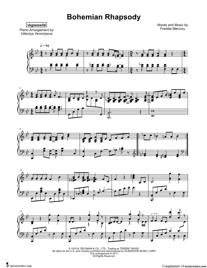 "This is the best piano arrangement of Bohemian Rhapsody of the many that I have heard. Vik..." Read reviews
