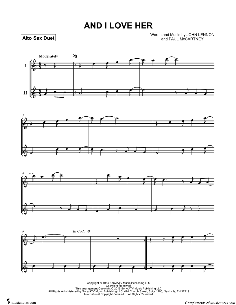 And I Love Her - Alto Saxophone Duet |