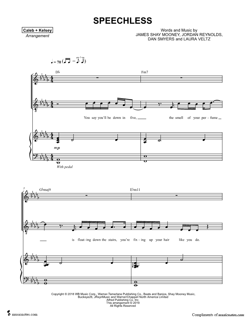 Many of the arrangements on Musicnotes have transpositions available, typically in C Major, as well as 3 sharps and 3 flats. If you do not see your desired key, you can request a transposition by reaching out to Customer Support.