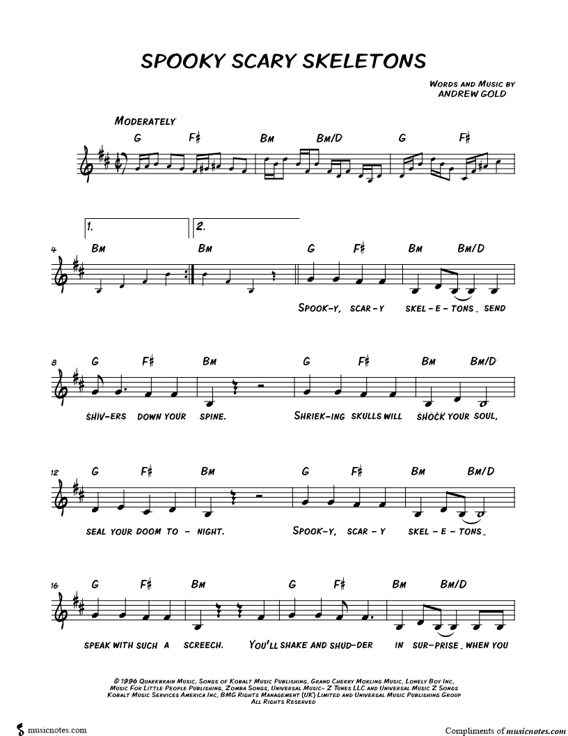 Leadsheets typically only contain the lyrics, chord symbols and melody line of a song and are rarely more than one page in length. Musicians will often use these skeletons to improvise their own arrangements. Leadsheets often do not contain complete lyrics to the song.