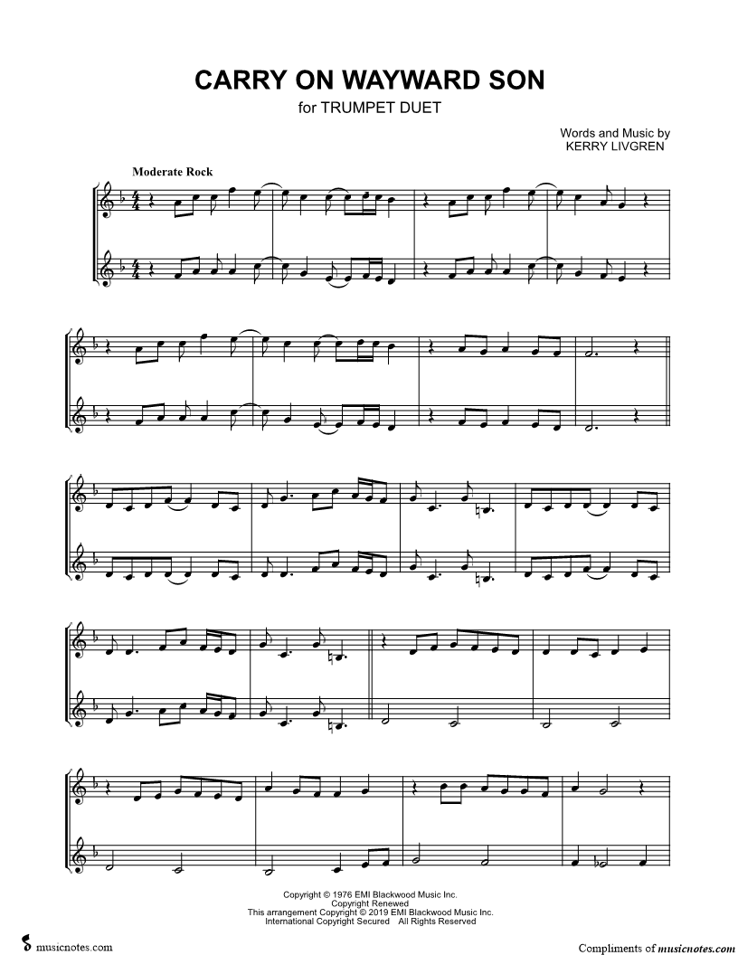 Trumpet 1, range: Bb3-F5 Trumpet 2, range: A3-C5 | |