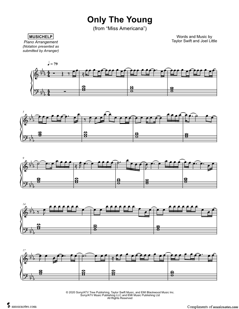 Many of the arrangements on Musicnotes have transpositions available, typically in C Major, as well as 3 sharps and 3 flats. If you do not see your desired key, you can request a transposition by reaching out to Customer Support.