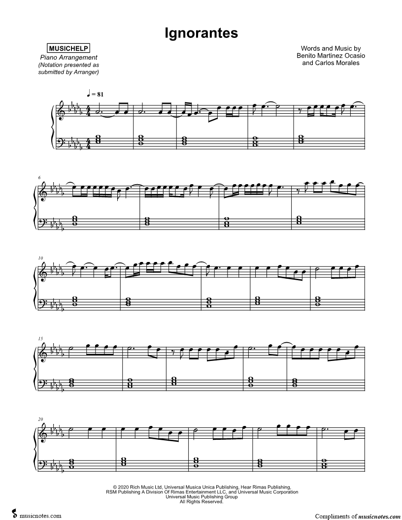 Many of the arrangements on Musicnotes have transpositions available, typically in C Major, as well as 3 sharps and 3 flats. If you do not see your desired key, you can request a transposition by reaching out to Customer Support.