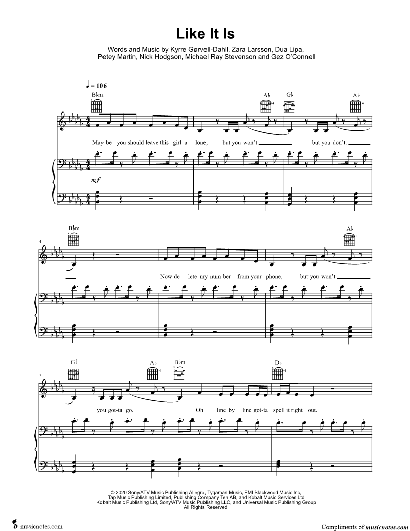Voice, range: Bb3-C5 Backup Vocals Piano | |
